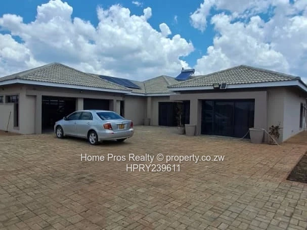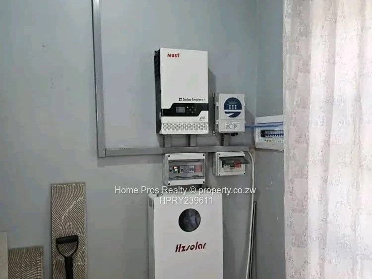 Stunning single-level family home in Marlborough, Harare West — modern, spacious and move-in ready. This 5-bedroom, 2-bathroom property sits on a generous 1,992 m² stand with approximately 900 m² of quality-built living space. The paved entrance and large walled courtyard (shown) provide ample secure parking and easy access to covered garages, while roof-mounted solar panels and an inverter/battery system pictured offer energy resilience.